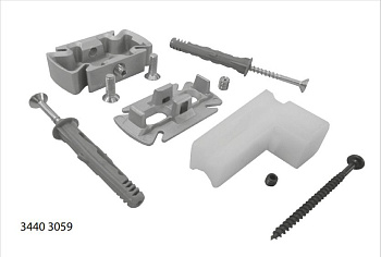 В комплекте: артикул состоит из крепления к стене 3440 + уголок 3431* и винты + саморезы + дюбеля