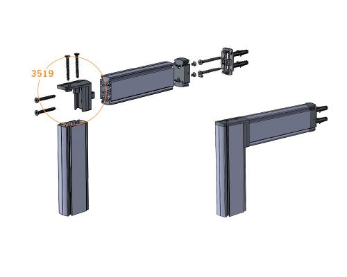 3519 угловое соединение для профиля под углом 90 градусов не требует запила под 45*, в комплект входит крепление к стене 3440.