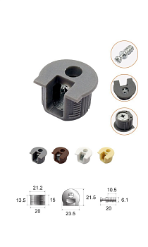 Стяжка эксцентриковая, 12,7х16мм, пластмасса/цинковое литье, серый, HISSEN
