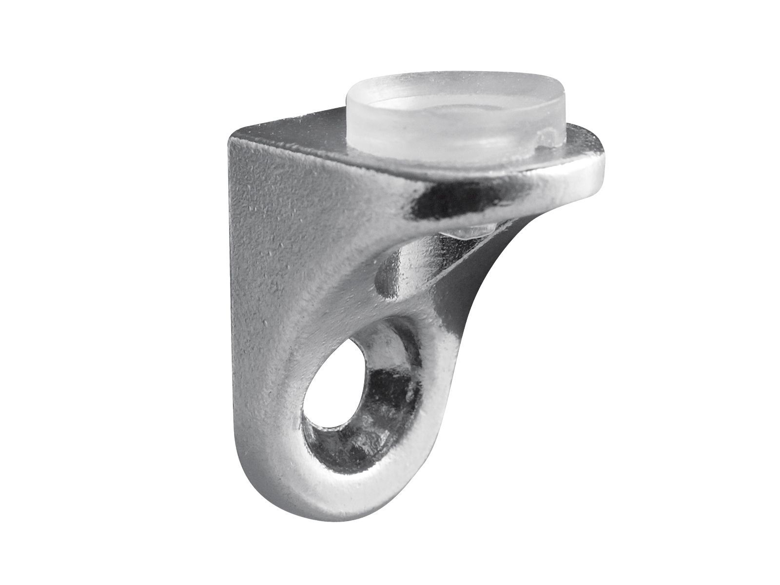 Держатель для стеклянных полок, CGP - приспособление для крепления стеклянной полки к корпусной плите мебельной конструкции. Держатель оснащен присоской для фиксации полки и соединяется с плитой посредством самореза.