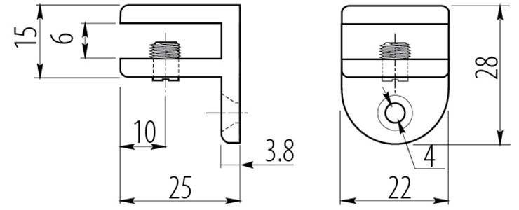 Полкодержатель с зажимом, HS0006, хром - кронштейн, используемый специально для стеклянных полок толщиной не более 5 мм. Держатель крепится к стенке при помощи самореза.