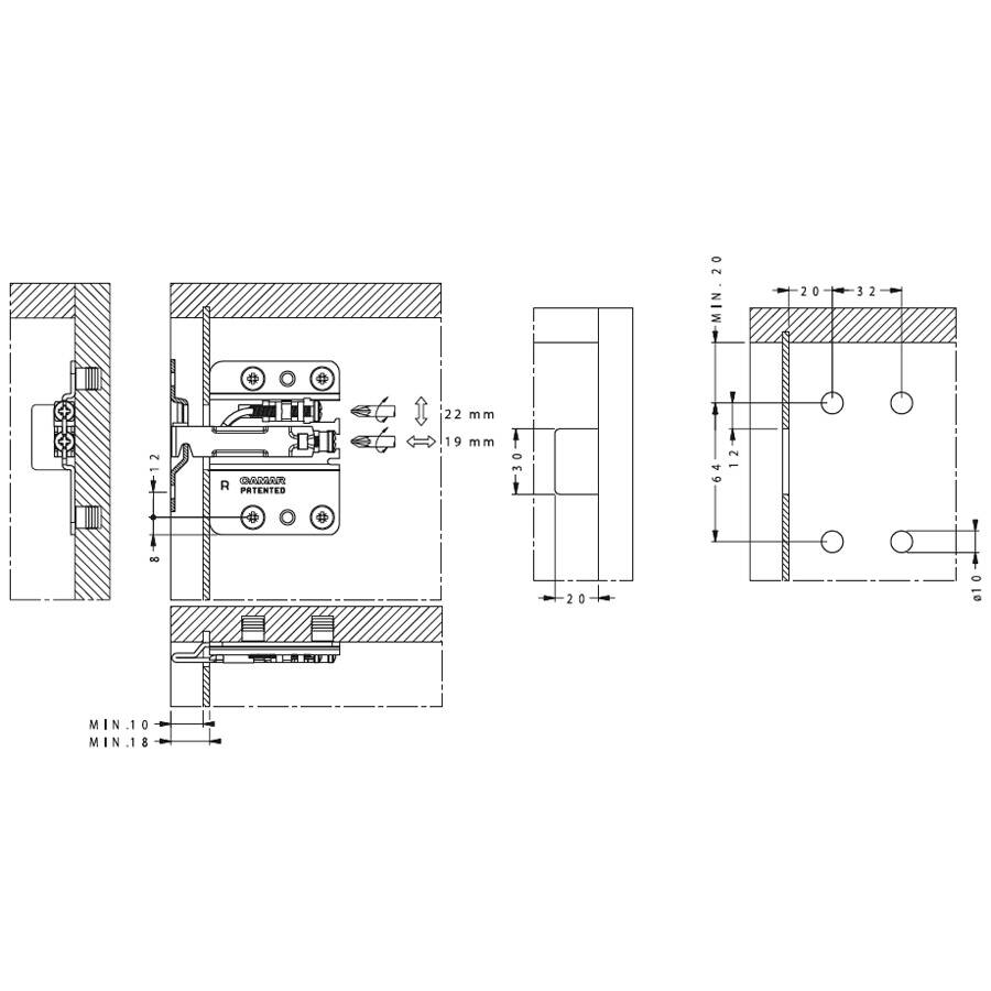 имеет регулировки по горизонтали 19 мм и по вертикали 22 мм;
