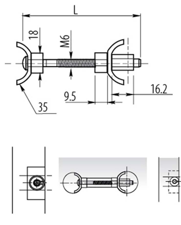 Стяжка для столешниц L-150 мм. - крепежная конструкция, используемая для стыковки двух столешниц. Для монтажа в нижних частях соединяемых плит изготавливаются углубления, и сверлятся канавки под шток стяжки.