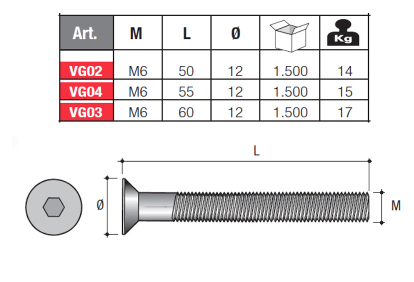 —Винт стяжки бочонок с потайной головкой под шестигранник, М6х80мм