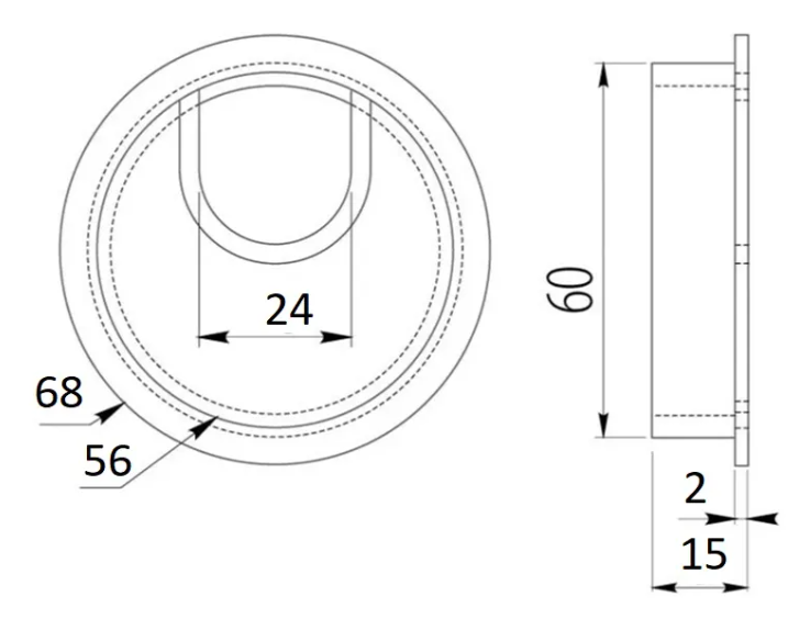 Заглушка кабель-канала металлическая, D-60 мм, инокс - элемент офисного оснащения, устанавливаемый на рабочем столе в специальное отверстие, служащее для пропуска проводов оргтехники. Заглушка придает эстетичный внешний вид поверхности офисного стола.