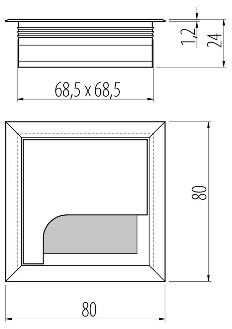 Пропуск для кабеля Merida 80х80, алюминий - дизайнерский вариант заглушки кабель-канала, имеющий квадратную форму. Заглушка устанавливается в технологическое отверстие офисного стола, через которое пропущены провода оргтехники, и придает рабочему месту эстетичный внешний вид.