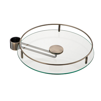 Центральная стеклянная полка диаметром 360 мм является составляющей частью барной системы. Эта полка устанавливается с помощью крепежных колец на вертикальную трубу и используется для хранения актуальных в ежедневном обиходе предметов и продуктов. Любимый чай, вазочка с конфетами, стаканы, блюдца, кофе, баночки и бутылочки с сиропами и соусами – всё, что важно и нужно каждый день в традициях определенной семьи. Для кого-то это набор для чаепития, а для кого-то – кофейные аксессуары. Одна хозяйка разместит здесь красивый сервиз, а другая использует эту полку под мелочи и предметы кухонного быта, которые должны быть всегда рядом. Как правило, такая стеклянная полка центрального типа служит еще и как эстетически значимый элемент кухонного дизайна. Именно на стеклянной изящной полке в зоне барной стойки, которая часто является зоной повышенного внимания, так красиво будут смотреться хрустальная посуда, изящные вазочки и миниатюрные чашечки, оригинальные бутылочки и коробочки.