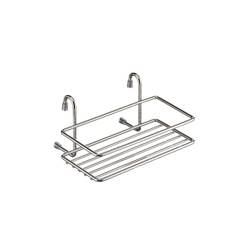 Полка позволяет использовать пространство на стене, освобождая рабочую поверхность. Полка небольшого размера, для самых нужных мелочей. Полка выполнена из нержавеющей стали. Легко и надежно вешается на трубу рейлинга.