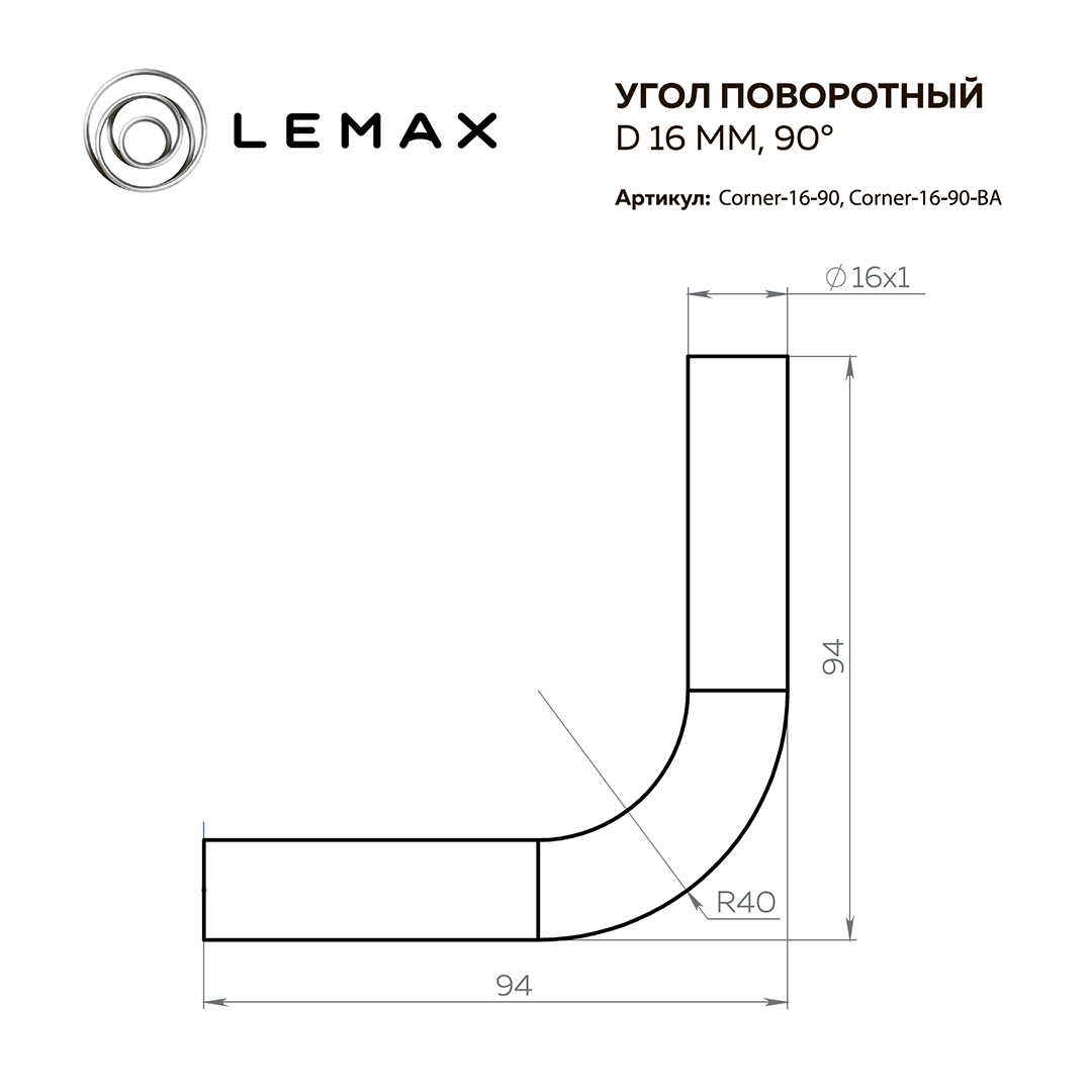 Угол поворотный диаметр 16 мм, 90 градусов.