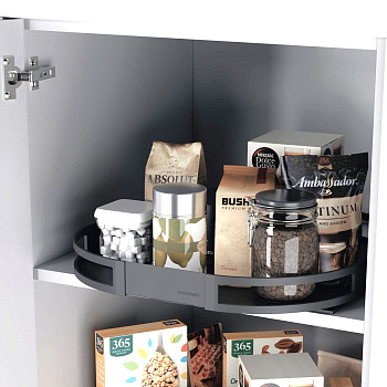 Торн Моушн - это вращающийся механизм, который помогает эффективно использовать сложнодоступные пространства на кухне — над встроенной бытовой техникой и в верхних отделениях высоких шкафов. Главное преимущество системы — независимое вращение каждой полки вокруг своей оси и регулировка по высоте. Так вы сможете грамотно задействовать каждый сантиметр кухни и быстро находить нужные вещи в шкафу.