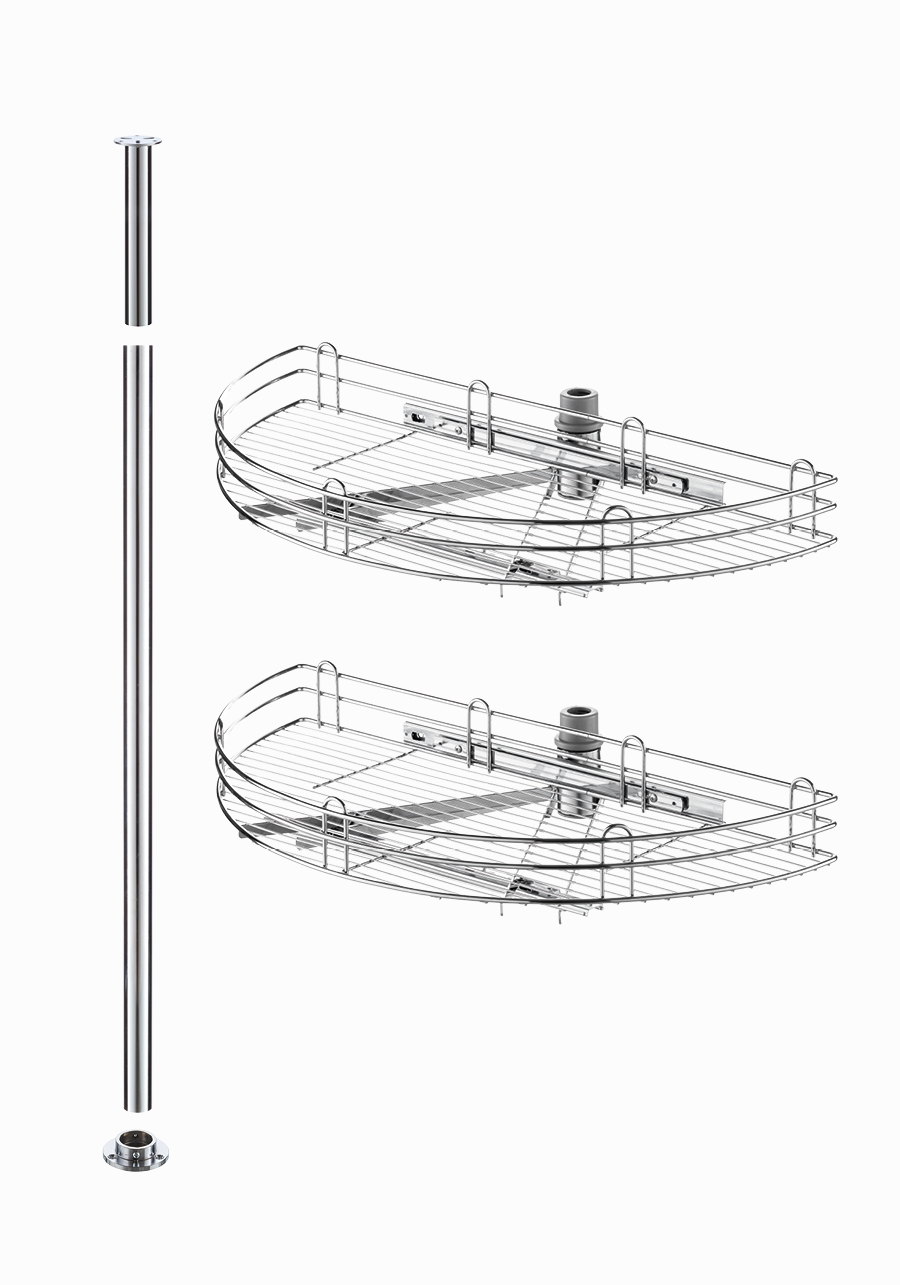Поворотно-выдвижной мех-зм из 2-х реш.полок в угл.шкаф 900мм под фасад 450мм, хром