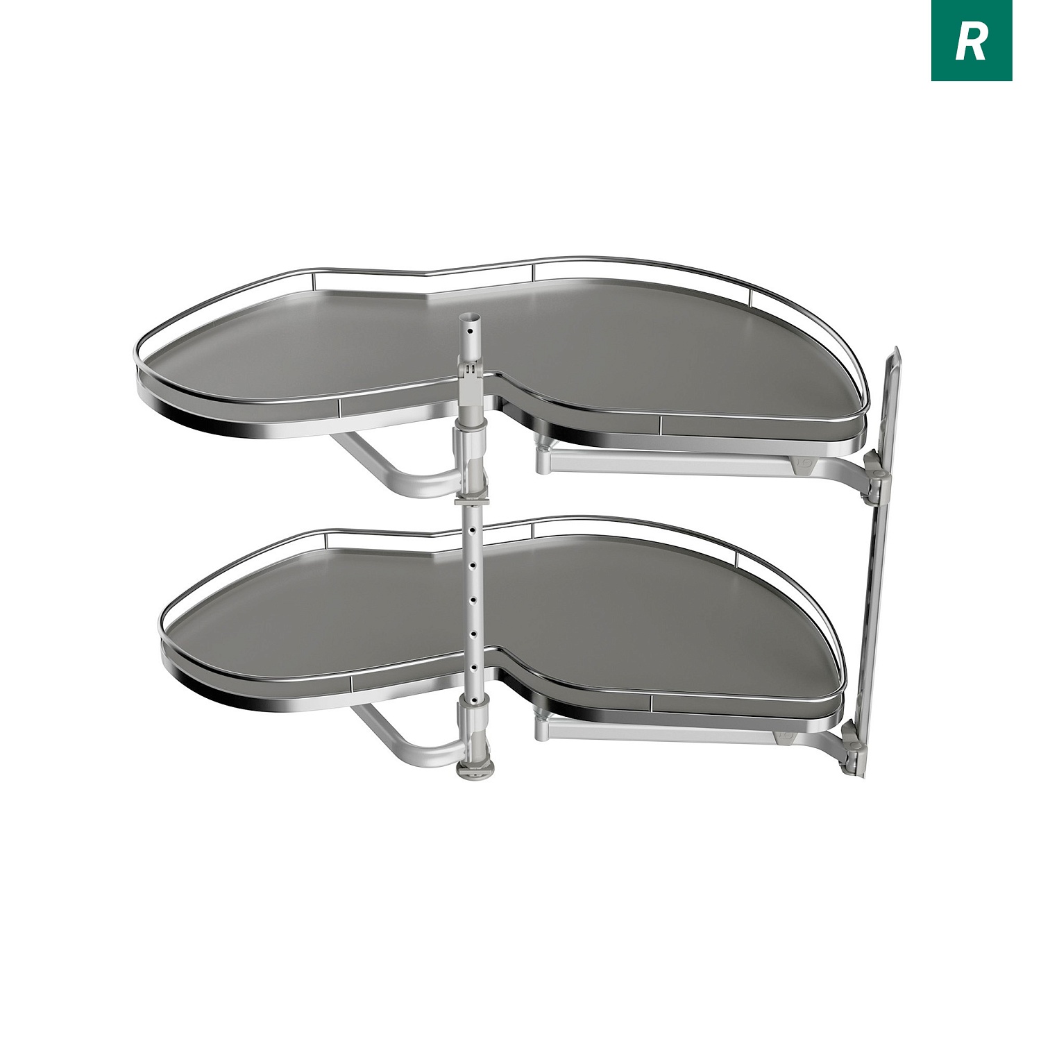 - Комплект полок правый, Леманс 600 мм, Арена КЛАССИК, 2 полки + рычаги, цвет ХРОМ, цвет дна Серый, антислип (0479240005)