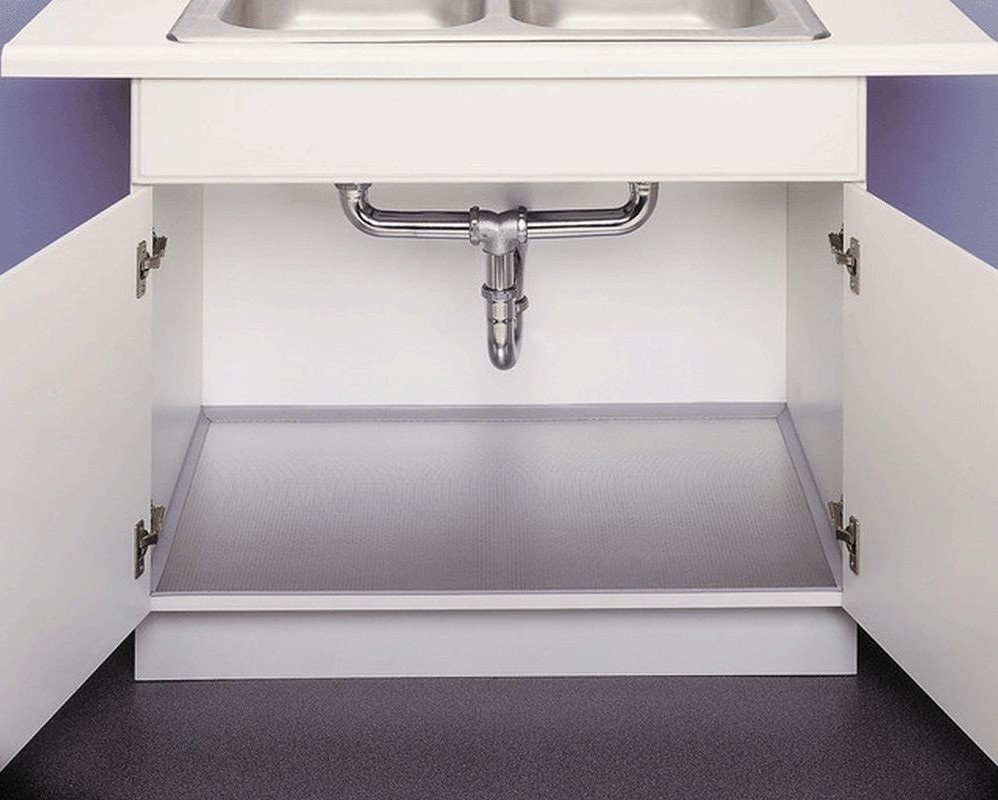 Поддон гигиенический алюминиевый для кухонной базы под раковину, используется в качестве подставки для чистящих средств и мусорного ведра.