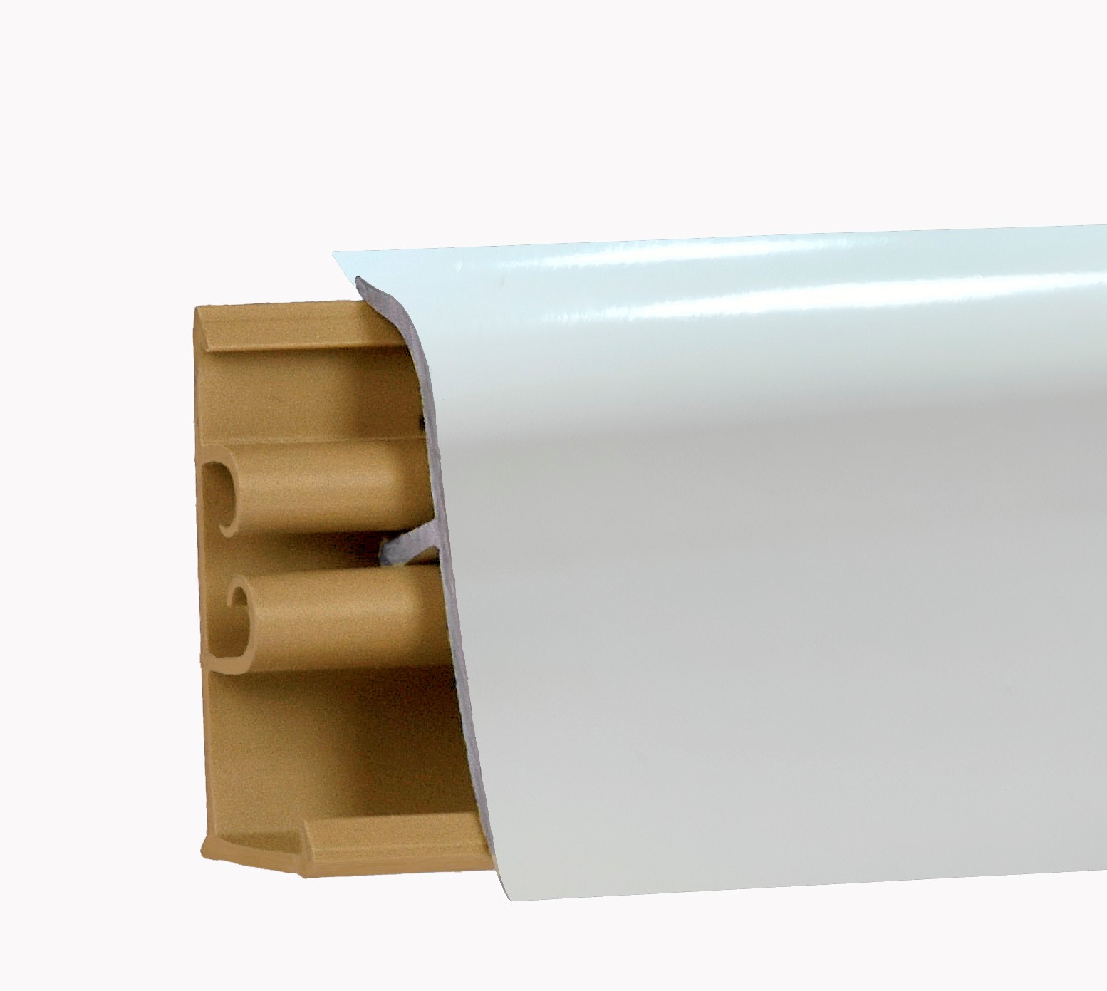 Ключевой особенностью конструкции являются уплотнительные края, которые теперь интегрированы на лицевую поверхность плинтуса и имеют 100% заливку по цвету - т.е. и резинка и плинтус идут одного декора.