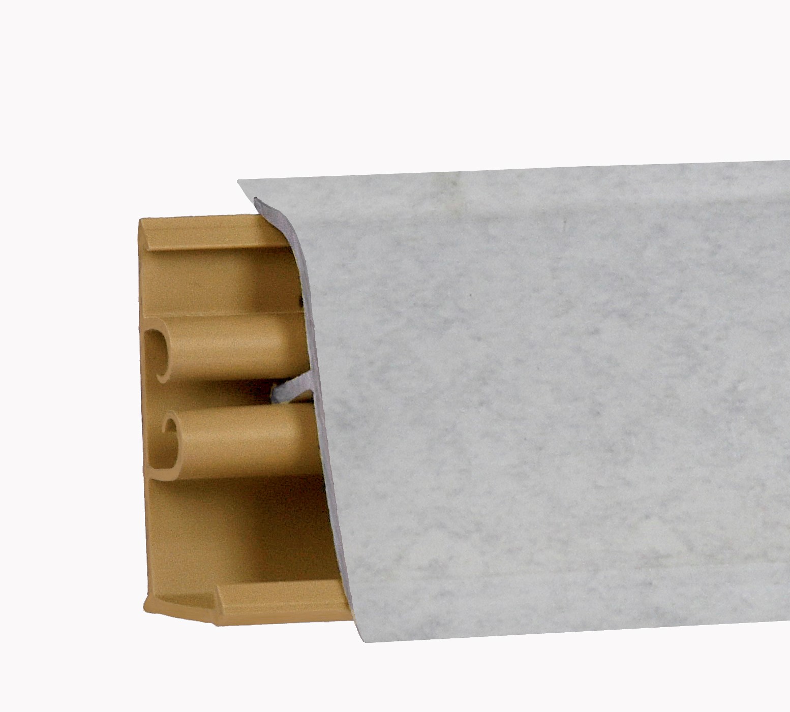 Ключевой особенностью конструкции являются уплотнительные края, которые теперь интегрированы на лицевую поверхность плинтуса и имеют 100% заливку по цвету - т.е. и резинка и плинтус идут одного декора.