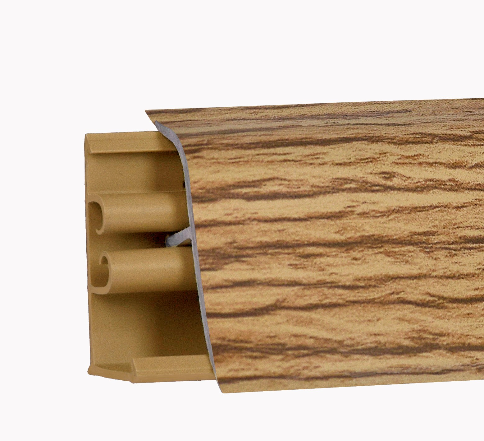 Ключевой особенностью конструкции являются уплотнительные края, которые теперь интегрированы на лицевую поверхность плинтуса и имеют 100% заливку по цвету - т.е. и резинка и плинтус идут одного декора.