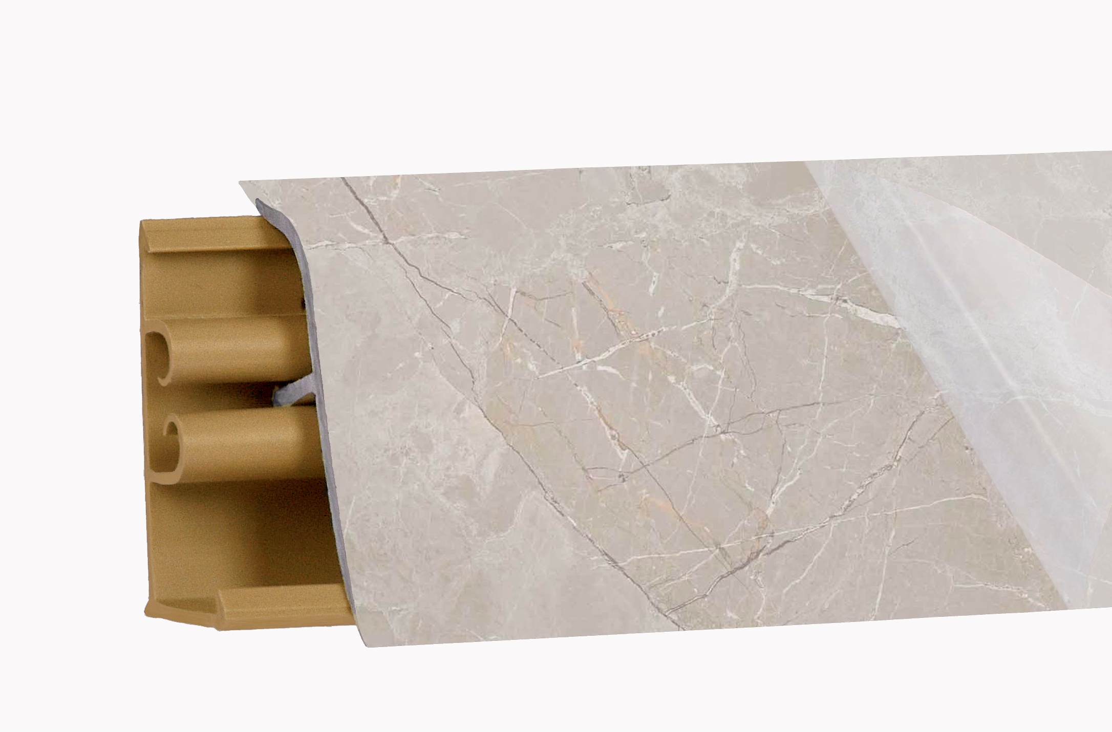 Ключевой особенностью конструкции являются уплотнительные края, которые теперь интегрированы на лицевую поверхность плинтуса и имеют 100% заливку по цвету - т.е. и резинка и плинтус идут одного декора.