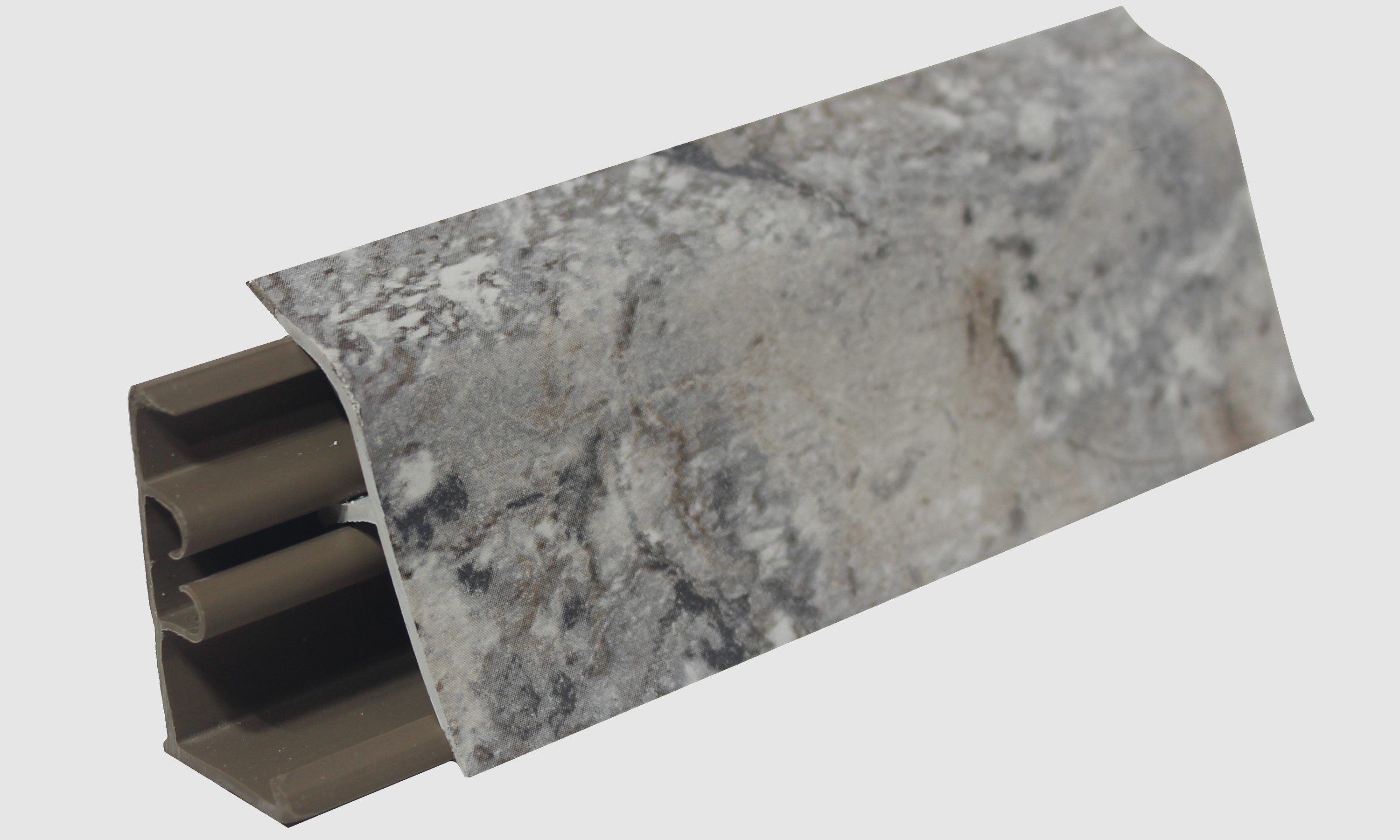 Ключевой особенностью конструкции являются уплотнительные края, которые теперь интегрированы на лицевую поверхность плинтуса и имеют 100% заливку по цвету - т.е. и резинка и плинтус идут одного декора.