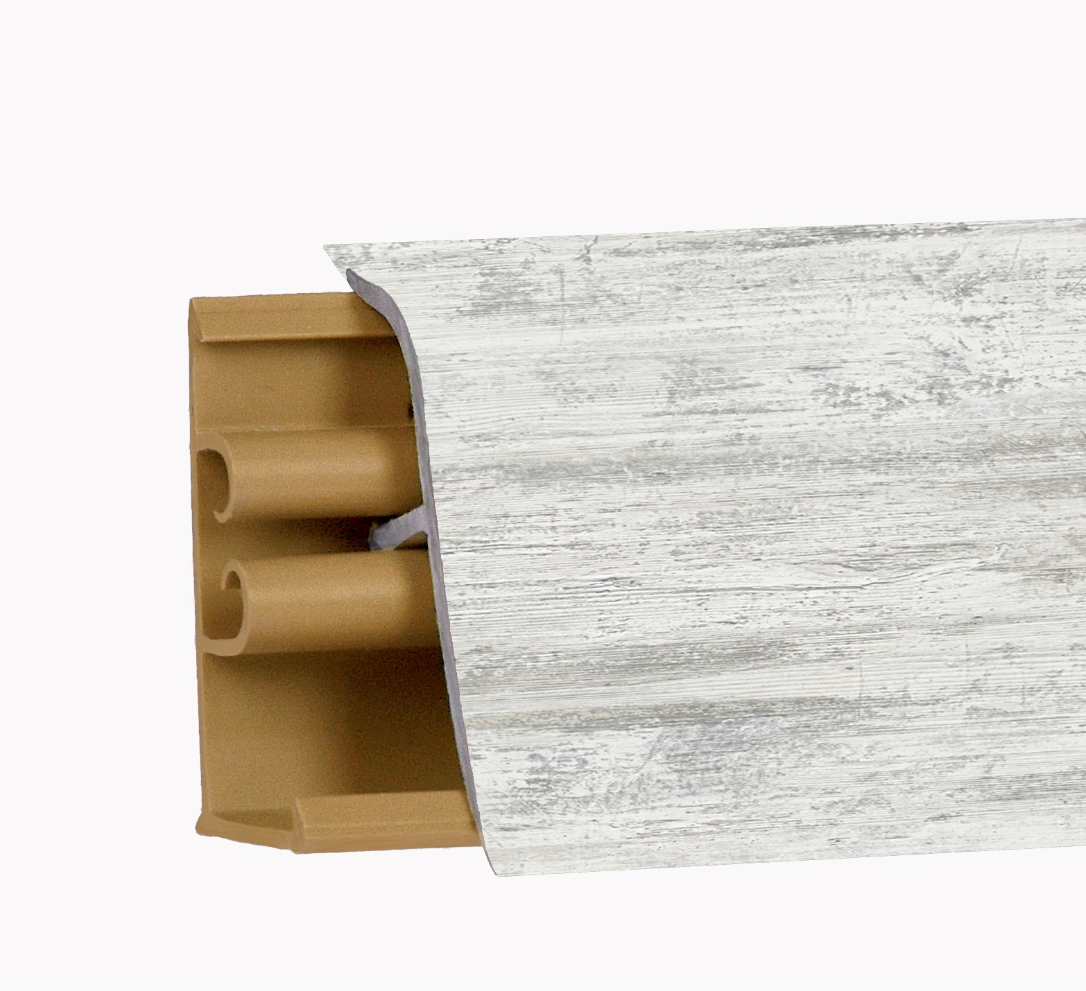 Ключевой особенностью конструкции являются уплотнительные края, которые теперь интегрированы на лицевую поверхность плинтуса и имеют 100% заливку по цвету - т.е. и резинка и плинтус идут одного декора.