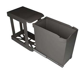 Оснащен шариковыми направляющими полного выдвижения. Автоматическое выдвижение при открывании двери при креплении поводка к фасаду. Подходит для корпусов от 300мм при ручном выдвижении, от 400мм при автоматическом выдвижении. Съемная крышка и внутреннее ведро для легкой очистки. Высота 442мм. Минимальная глубина 472мм. Крепление ко дну корпуса.