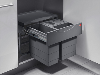Система сконструирована специально для установки в распашной шкаф под мойку. Благодаря компактным размерам по глубине в шкафу с мойкой также уместятся проточный водонагреватель и фильтр питьевой воды. Минимальная ширина шкафа 500мм. Высококачественная стабильная система с шариковыми направляющими полного выдвижения с мягким ходом. Стационарная крышка служит полочкой для аксессуаров, средств по уходу, она скрывает содержимое ведер, благодаря чему в шкафу всегда опрятно. Быстрый и простой монтаж без применения специальных инструментов - пользователь может установить систему самостотельно даже в уже готовую кухню. Рама системы монтируется ко дну кухонного шкафа на 4 самореза. Стенки шкафа при этом не задействованы для монтажа, что позволяет использовать свободное пространство внутри шкафа для размещения других компонентов. Например, в шкафу шириной 600мм вы можете также установить бутылочницу. Система подходит не только для сортировки мусора, но также для хранения овощей или грязного белья, если стиральная машина установлена в кухне. Экологичный высококачественный пластик обеспечивает безопасное хранение продуктов. При необходимости ведра легко вынимаются, их можно также использовать по хозяйству. Система легко разбирается, ее легко содержать в чистоте. Система подходит по высоте для установки в шкаф с мойкой. Для упрощения обвязки мойки рекомендуем компактный сифон. Встраиваемая система сортировки мусора производится в Германии в соответсвии с европейскими стандартами качества.