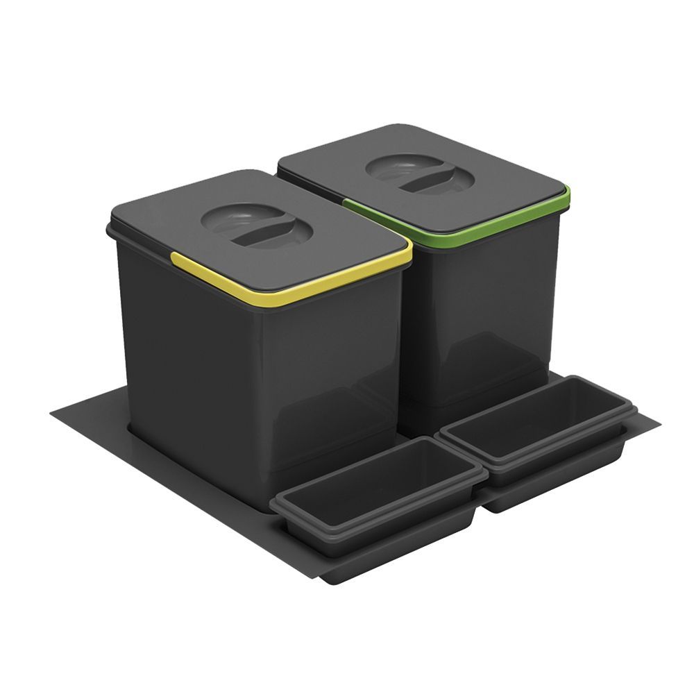 —Система контейнеров для мусора, 2х15л+2 емкости, в шкаф на 600мм, пластик, антрацит
