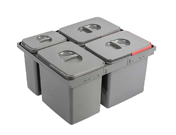Комплект вёдер МУЛЬТИНО NEW 600, 3х15L+1х7L + каркас с креплением к фасаду, антрацит - набор вместительных емкостей для бытовых отходов. Ведра изготовлены из экологичного пластика и позволяют сортировать мусор в соответствии с современной практикой утилизации отходов.
