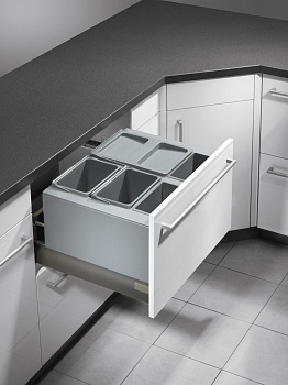 Хозяйки оценят многофункциональность системы XXL. Кроме емкостей под мусор здесь есть корзины для средств по уходу, а также отделения для различных мелочей. Верхнюю стационарную крышку можно использовать в качестве полочки для губок и хозяйственных перчаток. Плотно закрывающиеся пластиковые крышки к ведрам не дают распространяться запахам.