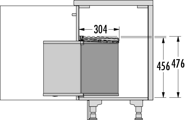Ведро монтируется на левую или правую боковую стенку шкафа. Поводок открывания синхронно с дверью крепится на внутреннюю поверхность фасада.