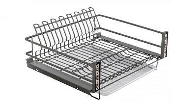 Сушилка выкатная для посуды в нижнюю базу GTV MOVIX PRO, 600 мм с креплением фасада, с поддоном, без направляющих, антрацит - выдвижная сетчатая емкость, устанавливаемая в модуль кухонного гарнитура. Используется для сушки и хранения посуды, извлекается из шкафа и убирается обратно за счет шариковых направляющих полного выдвижения.