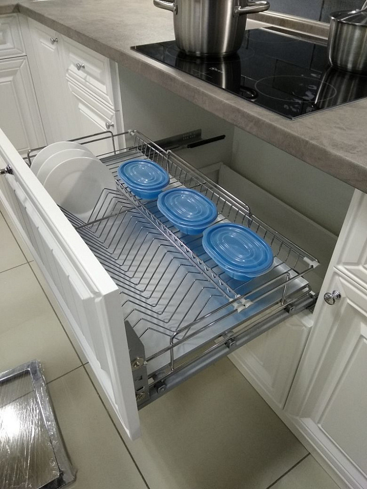 Зону хранения посуды можно организовать эффективно, если использовать выдвижные корзины с сушкой. Новая линейка бренда AFF – это современная коллекция выдвижных корзин с посудосушителем Sicilia. Коллекция представлена 1-уровневыми выдвижными корзинами c сушкой с направляющими полного выдвижения для модулей шириной 450, 500, 600, 800 и 900мм. Сетка позволит расположить каждый предмет с точки зрения эргономики: на первом плане будет та посуда, которая используется чаще.