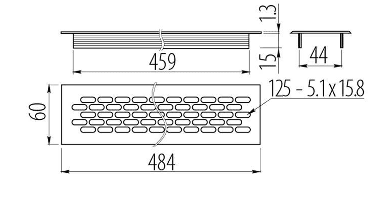 Решетка вентиляционная 484х60 мм, белая - видимый элемент системы воздухообмена, закрывающий отверстие воздуховода внутри помещения.