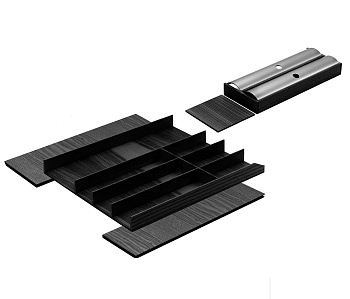 Организацию пространства легко сконфигурировать из отдельных элементов для любого выдвижного ящика (как с прямыми, так и со скошенными боковинами). Вы можете организовать отдельные места для хранения ножей, специй, рулонов фольги и пекарской бумаги, мерных емкостей и прочих вещей.