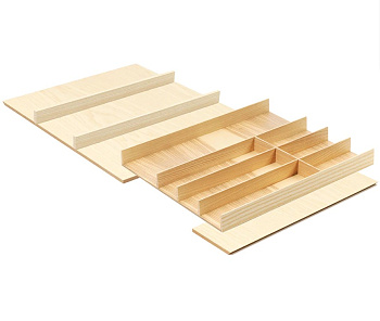 Организацию пространства легко сконфигурировать из отдельных элементов для любого выдвижного ящика (как с прямыми, так и со скошенными боковинами). Вы можете организовать отдельные места для хранения ножей, специй, рулонов фольги и пекарской бумаги, мерных емкостей и прочих вещей.