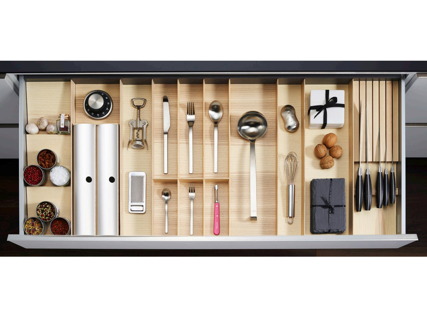 Модульная система организации для столовых приборов ФАЙНЛАЙН ЛИНИК была разработана для создания уникального дизайна и комфорта использования выдвижных ящиков.