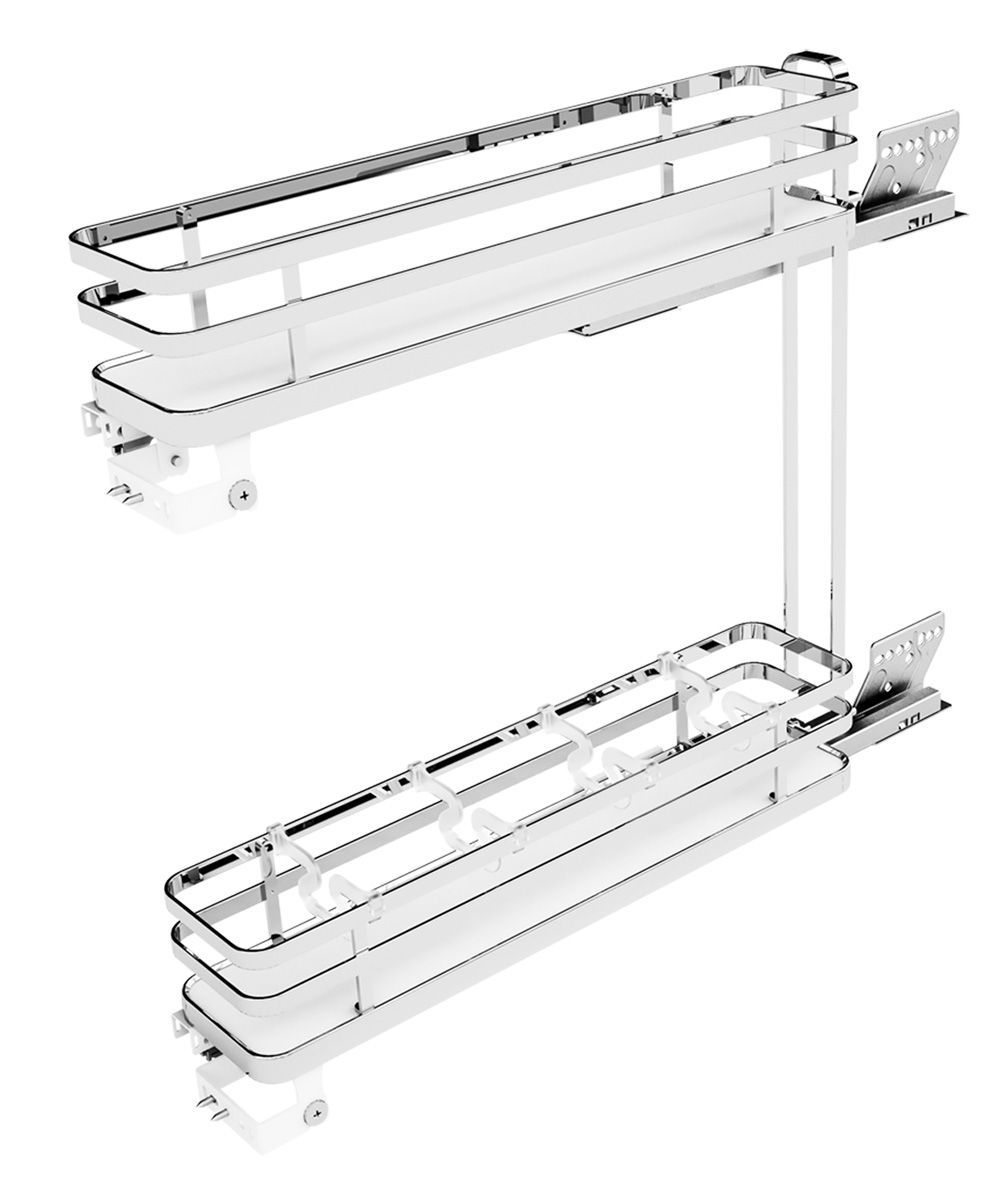 Бутылочница выдвижная для нижнего шкафа с креплением для мебельного фасада. Полное выдвижение, мягкое закрывание. Дно корзин выполнено из ДСП с противоскользящим покрытием. При оснащении высокого шкафа - отличная комбинация: установка двух бутылочниц SigmaSoft одна над другой (высота колонны 1200-1600мм).