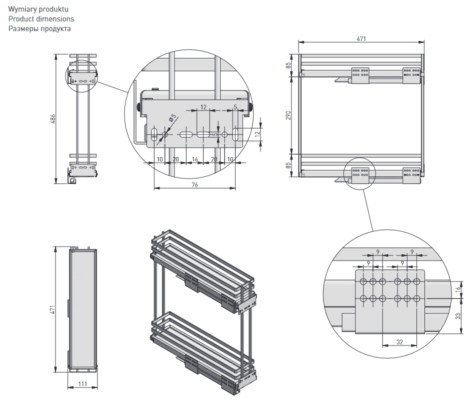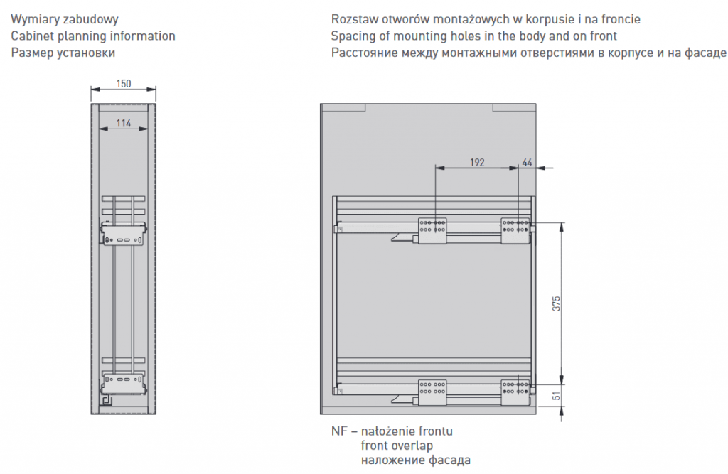 Бутылочница поставляется без направляющих. Комплект фирменных шариковых направляющих MOVIX PRO (450 мм), для левосторонней или правосторонней установки, приобретается отдельно.