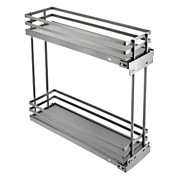 Двухуровневая боковая корзина MOVIX PRO 150 мм (бутылочница) Cargo без направляющих, антрацит (плоский прут) - выдвижная система хранения, устанавливаемая в нижний модуль кухонного гарнитура. Корзина изготовлена так, что в нее удобно ставить бутылки с напитками и жидкими продуктами питания, поэтому она также называется бутылочницей.
