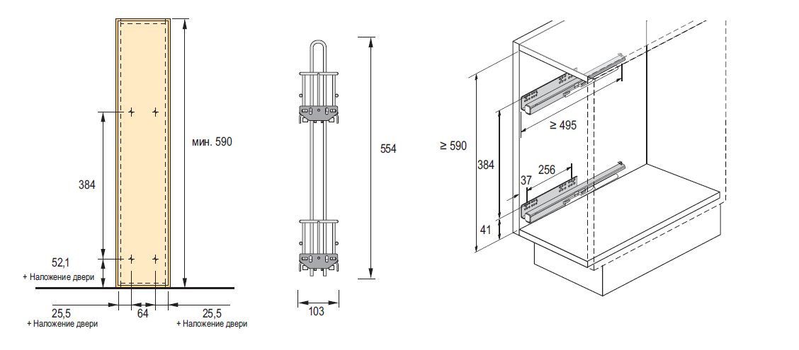- Глубина 495 мм