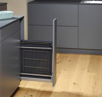 - Выдвижной механизм для нижних узких шкафов с шириной фасада 150 мм.