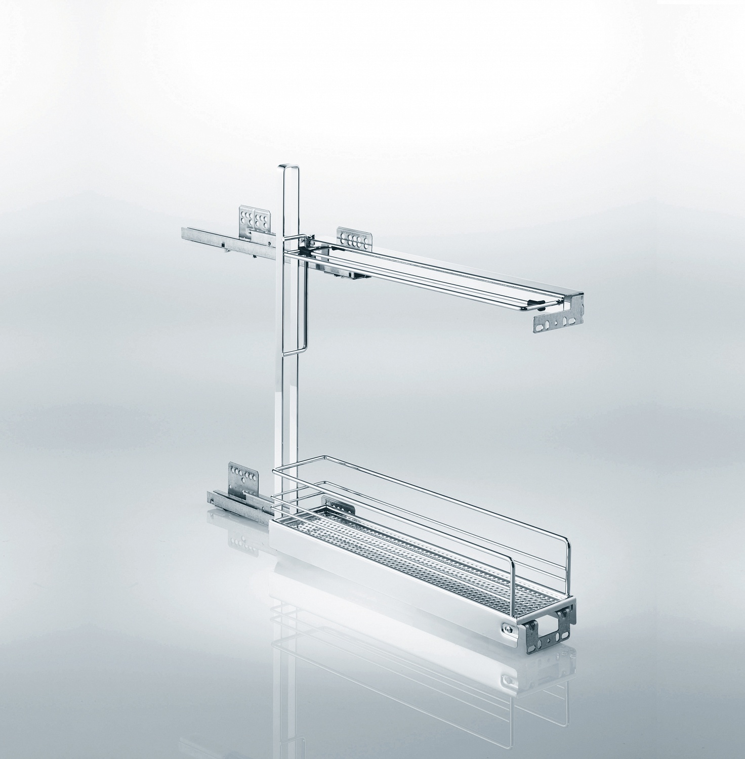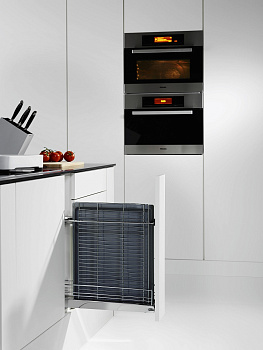- Выдвижной механизм для нижних узких шкафов с шириной фасада 150 мм.