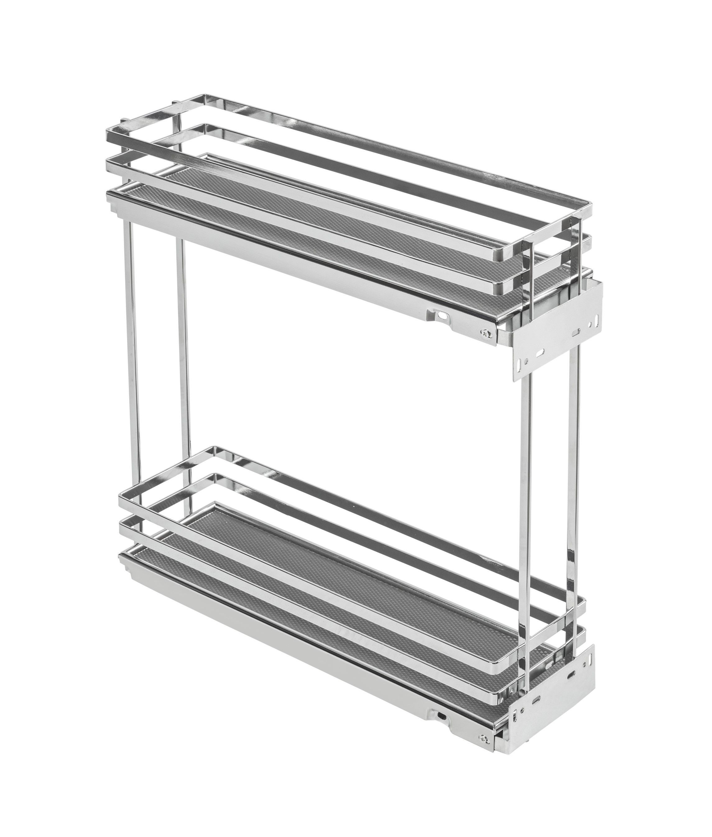 Двухуровневая боковая корзина MOVIX PRO 200 мм (бутылочница) Cargo без направляющих, хром (плоский прут) - выдвижная система хранения, устанавливаемая в нижний модуль кухонного гарнитура. Корзина изготовлена так, что в нее удобно ставить бутылки с напитками и жидкими продуктами питания, поэтому она также называется бутылочницей.