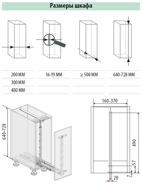 Выдвижная система Диспенса Джуниор Слим в базу 300мм, h=640-728 мм, хром, Kessebohmer