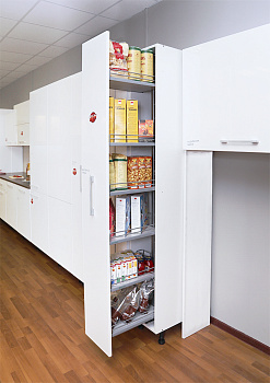 Высокая колонна для узких шкафов благодаря особому механизму полностью выдвигается из корпуса, открывая легкий обзор и доступ с двух сторон ко всему содержимому. Внутреннее пространство максимально используется для хранения. Система дополняется органайзерами Ю-Бокс, помогающими эффективно разместить предметы разных размеров и объемов. Механизм выдерживает нагрузку до 100 кг, плавное открывание и закрывание обеспечивается демпферами.