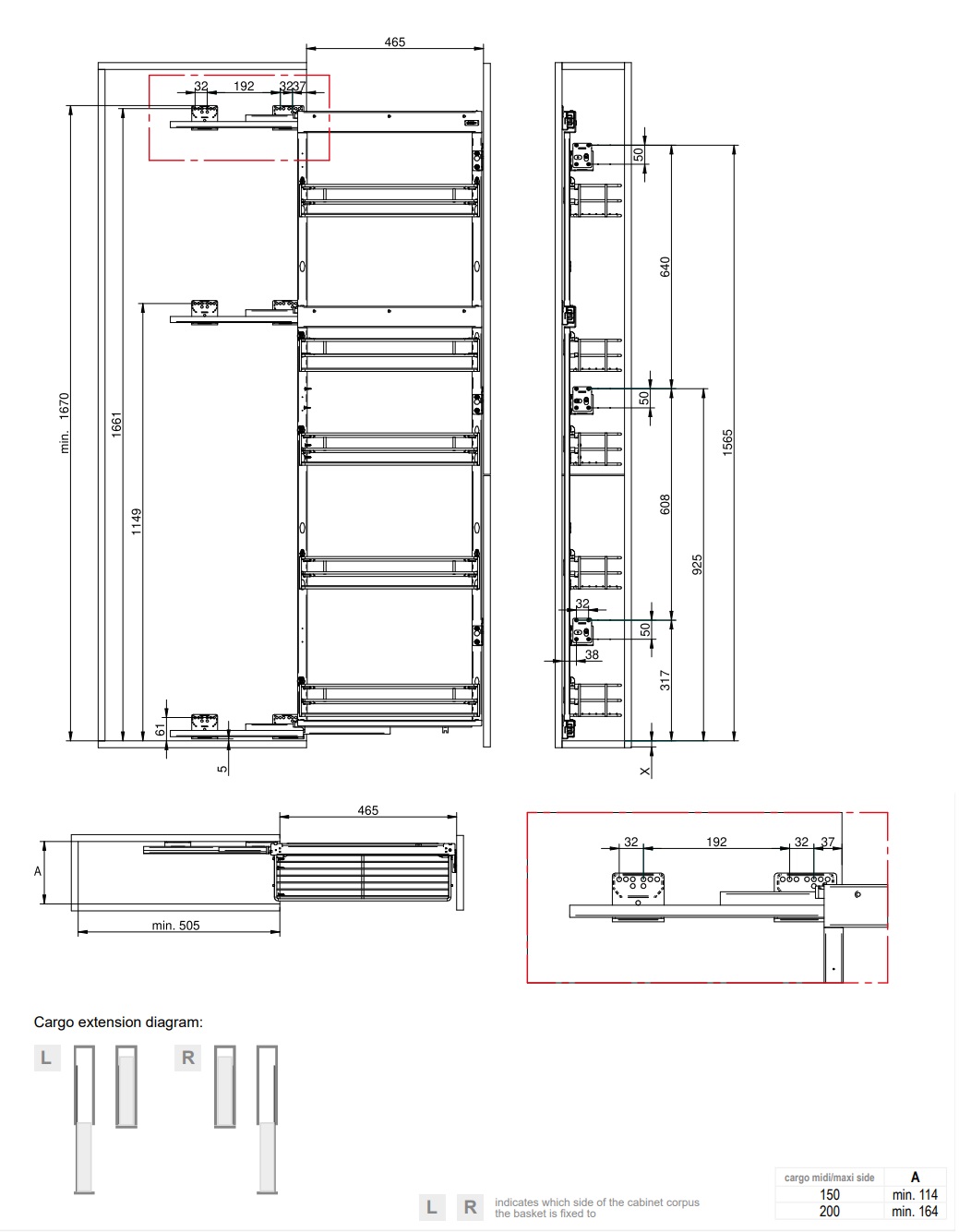 - Комплектация: рама, направляющие полного выдвижения с доводчиком, 5 корзин Сетка, фасадное крепление