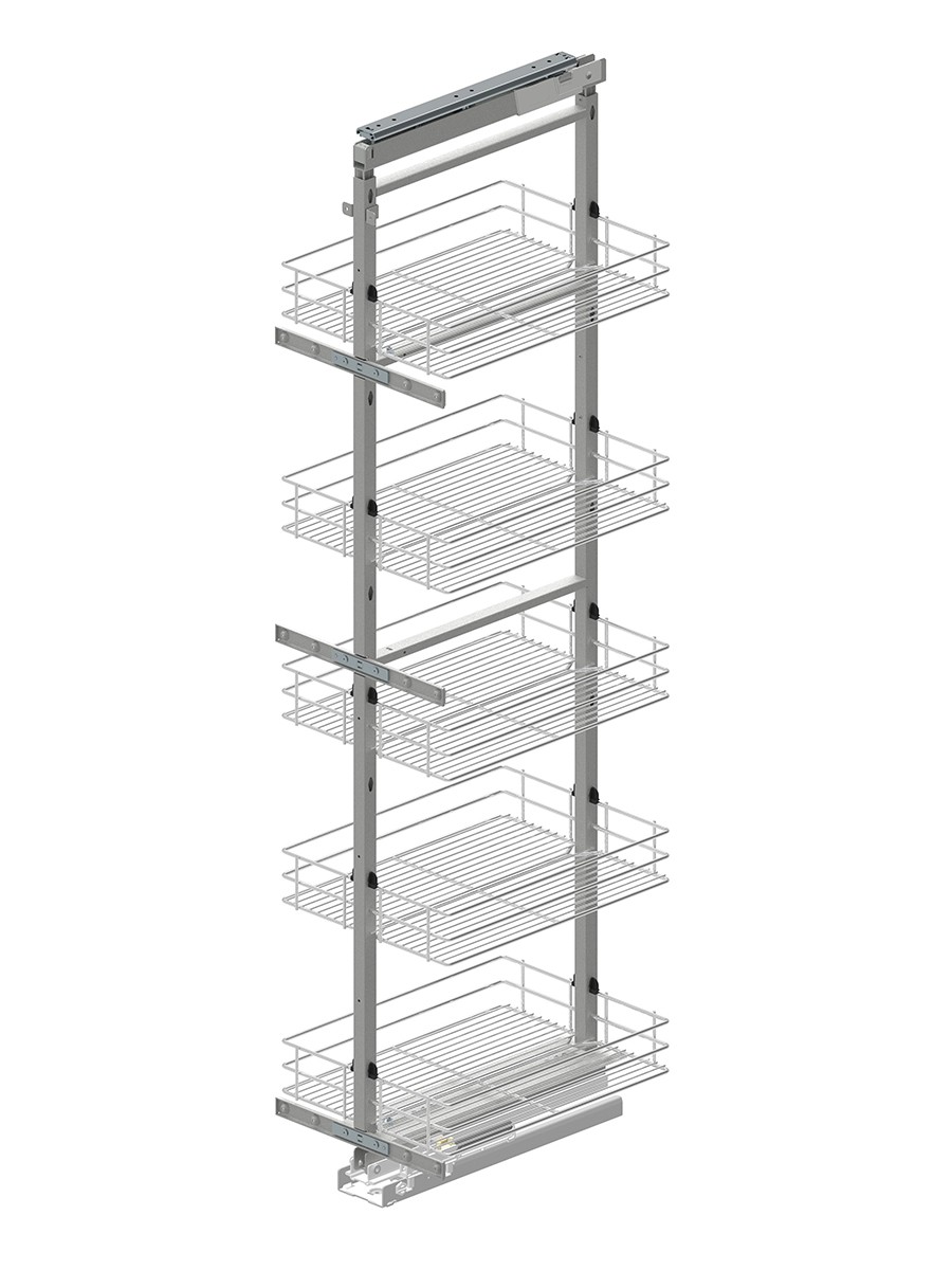- Возможность установки ограничителей для корзин, позволяющих разделять полки или размещать их на разных уровнях