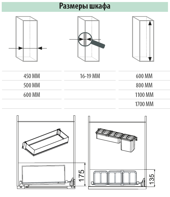 Механизм для  разделения пространства в шкафу. Устанавливается на фасад и предоставляет быстрый доступ к самому необходимому. Пространство шкафа делится в пропорции 60/40 для дополнительного обзора и быстрого доступа к продуктам, при этом вес полок и содержимого переносится на корпус и не влияет на функционирование фасада и легкость его открывания.