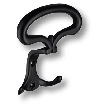 Несмотря на то, что крепления расположены по центру в нижней части, двухрожковый металлический крючок как будто держится на верхней широкой основе эллипсоидной формы. Здесь она выступает как гарант стабильности и зрительно делает крючок более мощным. Также эта модель доступна в цветах античая бронза, античное серебро, слоновая кость.