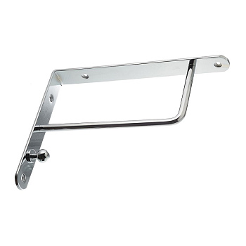 Полкодержатель стальной, c вешалкой, 073026, хром - кронштейн для деревянных полок, который также может быть использован для дополнительной поддержки столешницы. Устанавливается на стену при помощи саморезов. При использовании двух полкодержателей, нагрузка на полку - 30 кг.