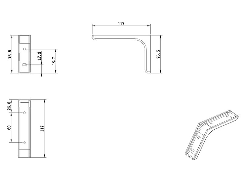 —Полкодержатель Г-образный, L=120мм, серый, без креплений, Китай